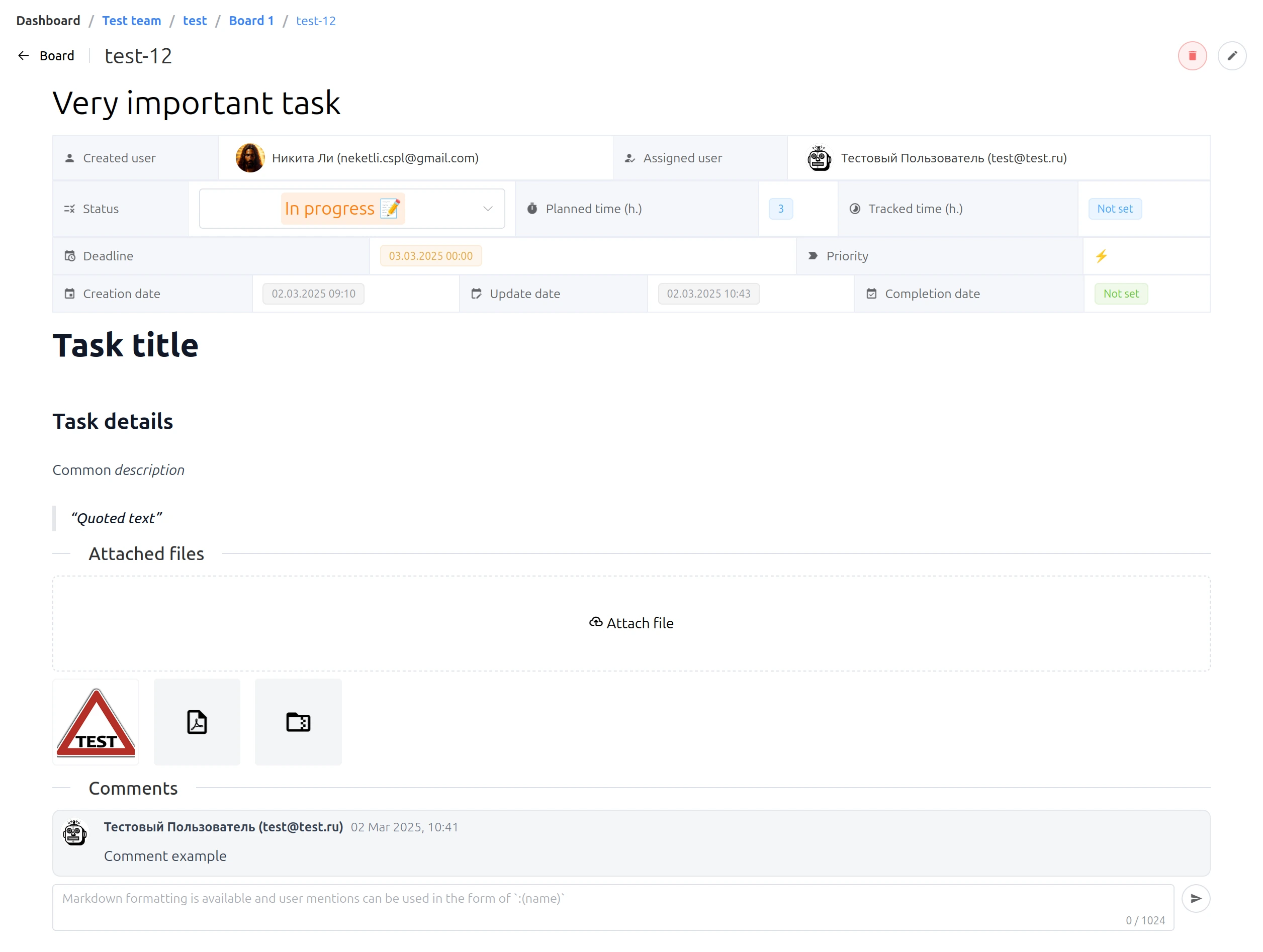 - Работайте вместе без боли благодаря возможности обсуждения задачи в комментариях и функциям обмена файлами.